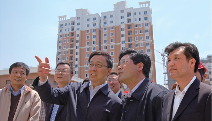 上海市委副書記、市長韓正到南匯區(qū)工作調(diào)研,在祝橋鎮(zhèn)“千匯苑”機(jī)場配套商品房基地實(shí)地考察時,韓正當(dāng)即稱贊:“這些樓房造得很漂亮?!?/p>