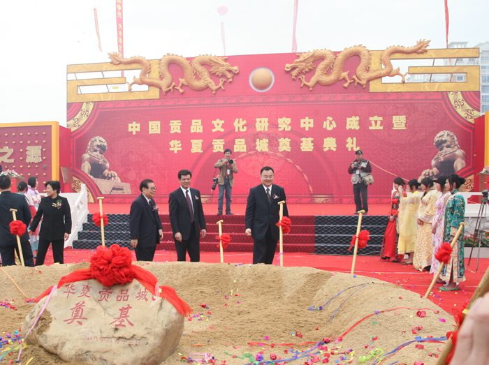 公司與中國(guó)民間文藝家協(xié)會(huì)合作組建的中國(guó)貢品文化研究中心正式成立。公司投資開(kāi)發(fā)建設(shè)的華夏貢品城也同時(shí)舉行了開(kāi)工奠基儀式。同日,中國(guó)貢品文化研究中心召開(kāi)了第一次工作會(huì)議。出席活動(dòng)的有原中宣部副部長(zhǎng)龔心瀚、中國(guó)文聯(lián)書記處書記白庚勝、中國(guó)民間文藝家協(xié)會(huì)黨組書記羅楊、中民協(xié)的全部副主席、正副秘書長(zhǎng)、各省市民協(xié)主席或秘書長(zhǎng)、南匯區(qū)委、人大、區(qū)府、政協(xié)四套班子主要領(lǐng)導(dǎo)和祝橋鎮(zhèn)黨委、政府領(lǐng)導(dǎo)等。