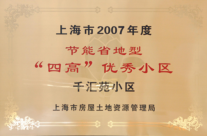 公司榮獲2007年度上海市住宅建設(shè)實(shí)事立功競(jìng)賽先進(jìn)公司。公司開(kāi)發(fā)建設(shè)的千匯苑小區(qū)榮獲上海市2007年度節(jié)能省地型“四高”優(yōu)秀小區(qū)、“上海市優(yōu)秀住宅金獎(jiǎng)”。