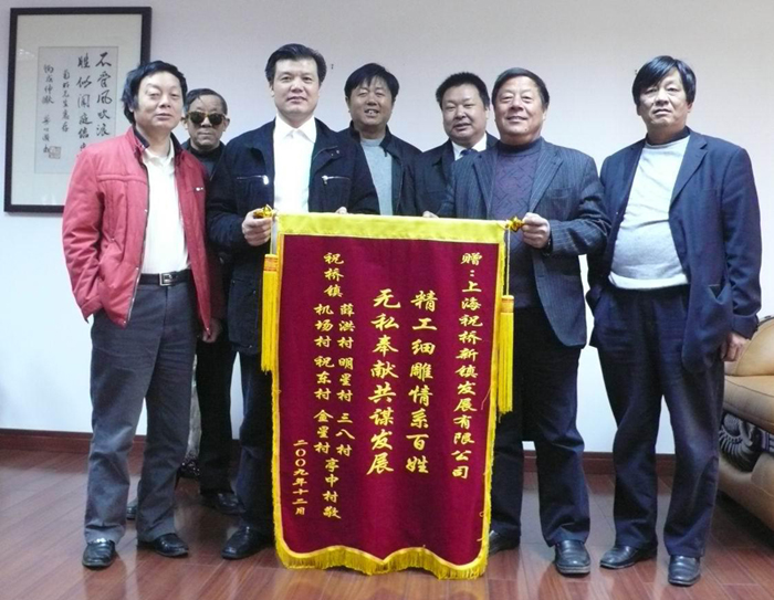 祝橋鎮(zhèn)薛洪機(jī)、機(jī)場(chǎng)村、明星村、祝東村、三八村、金星村、亭中村聯(lián)合向公司贈(zèng)送錦旗:“精工細(xì)雕情系百姓,無(wú)私奉獻(xiàn)共謀發(fā)展”。