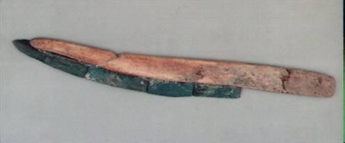 肅慎人制作的楛矢石砮,箭桿是用楛木做的,楛木是北方特產(chǎn)的一種灌木;做成箭鏃的石頭,是一種青石,也稱黑曜石。