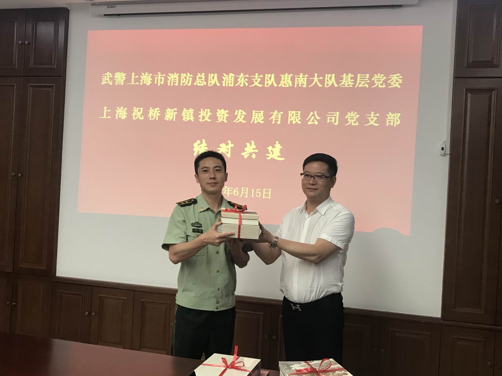 6月15日,新鎮(zhèn)公司與武警上海市消防總隊(duì)浦東支隊(duì)惠南大隊(duì)舉行結(jié)對(duì)共建儀式。武警上海市消防總隊(duì)浦東支隊(duì)惠南大隊(duì)黨委書(shū)記、教導(dǎo)員許昊,黨委副書(shū)記、大隊(duì)長(zhǎng)龔承,新鎮(zhèn)公司常務(wù)副總經(jīng)理潘紹剛,黨支部書(shū)記、副總經(jīng)理陸多官出席結(jié)對(duì)儀式 。